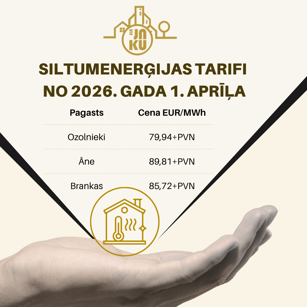 Pamatojoties uz Sabiedrisko pakalpojumu regulēšanas komisijas (SPRK) padomes 2026. gada 23. marta lēmumu Nr. 21, ir apstiprināti jauni siltumenerģijas apgādes pakalpojumu tarifi, kuros iestrādāta jaunā akcīzes nodokļa komponente.