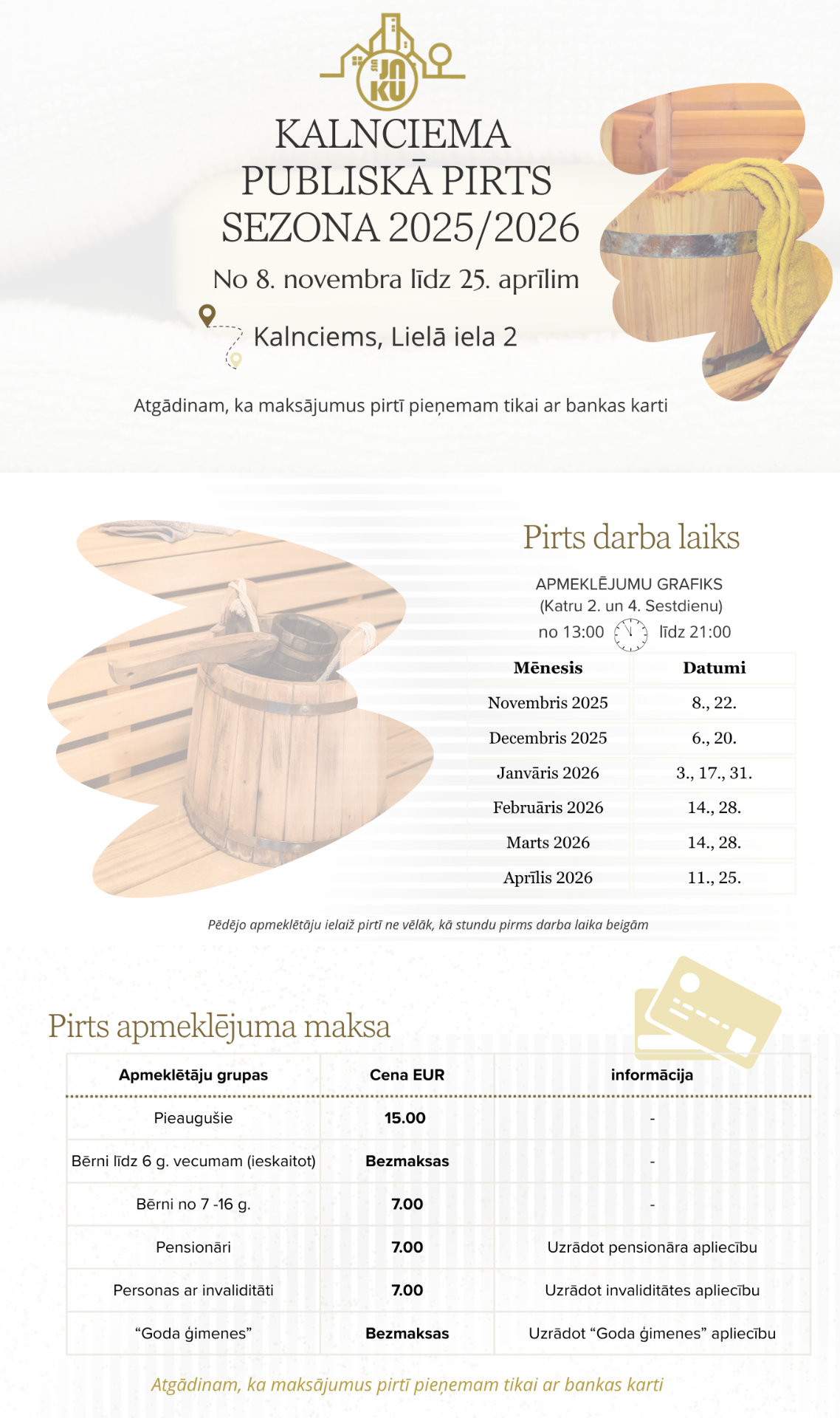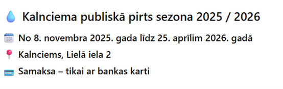 KALNCIEMA SABIEDRISKĀS PIRTS PAKALPOJUMI